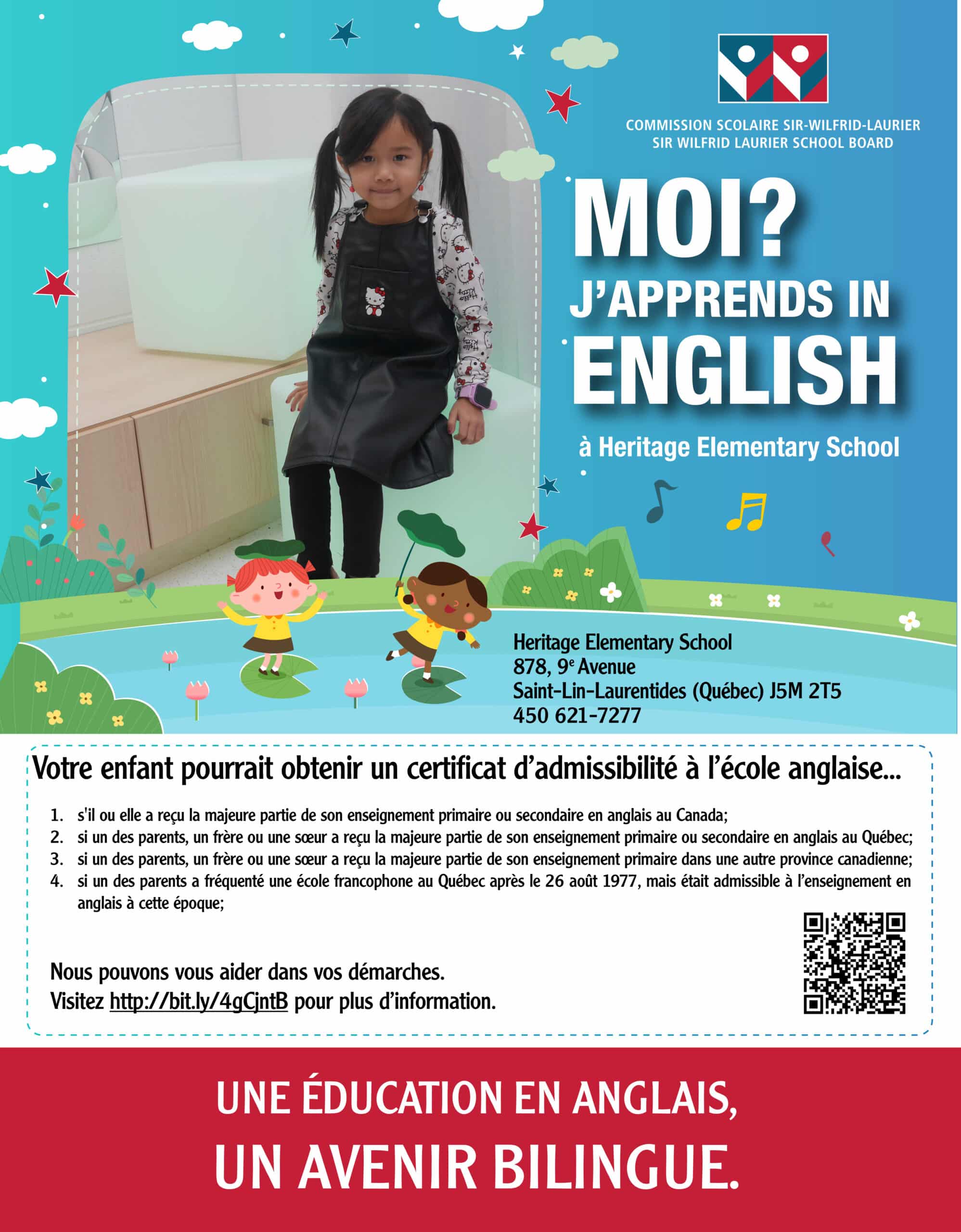 - Le demande du certificat d’admissibilité à recevoir l’enseignement en anglais (formulaire de demande disponible à l’école)